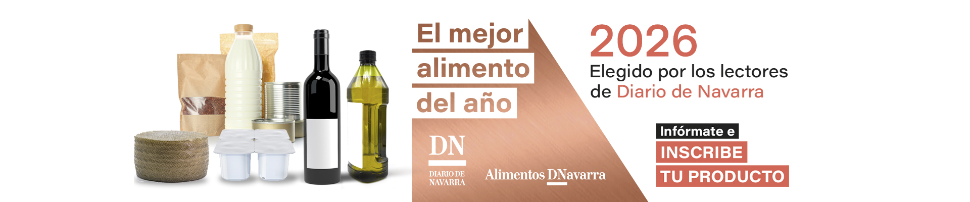 Diario de Navarra busca El Mejor Alimento del Año 2026. Si has lanzado un producto innovador o de calidad que merece ser reconocido, este es el momento de darlo a conocer. Inscríbelo y participa en una iniciativa que pone en valor el talento, el esfuerzo y la capacidad de innovación de los productores navarros. Tu producto podrá ganar visibilidad, conectar con el público y formar parte de una selección que destaca lo mejor de nuestra tierra.