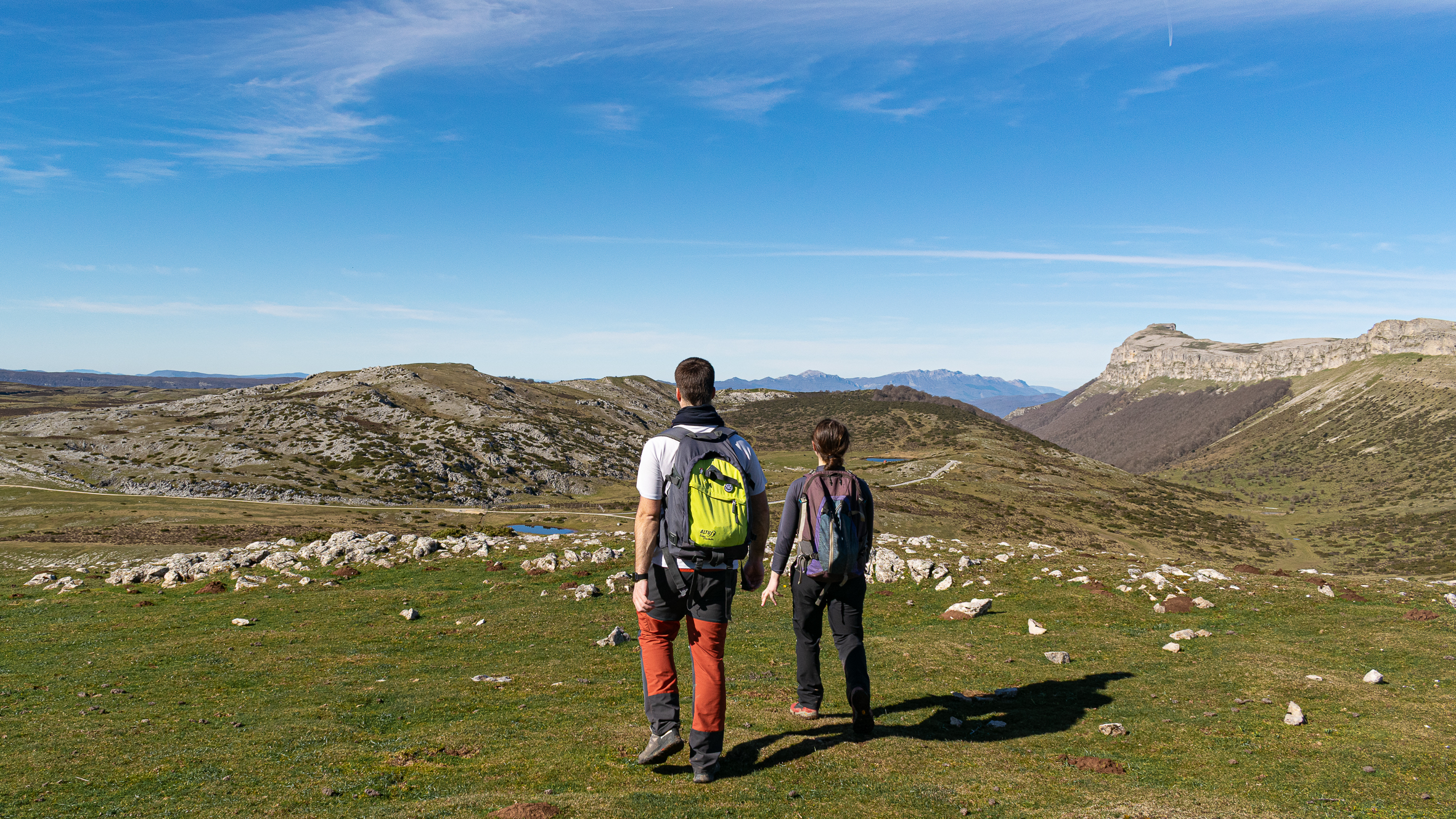 Beriaingo arana Concurso: Paisajes y patrimonio https://concursos.diariodenavarra.es/conocer-navarra-2025/?p=24575 Dos montañeros paseando por la cima Peñablanca con vistas a la clásica e imponente sierra de San Donato, en un día soleado.