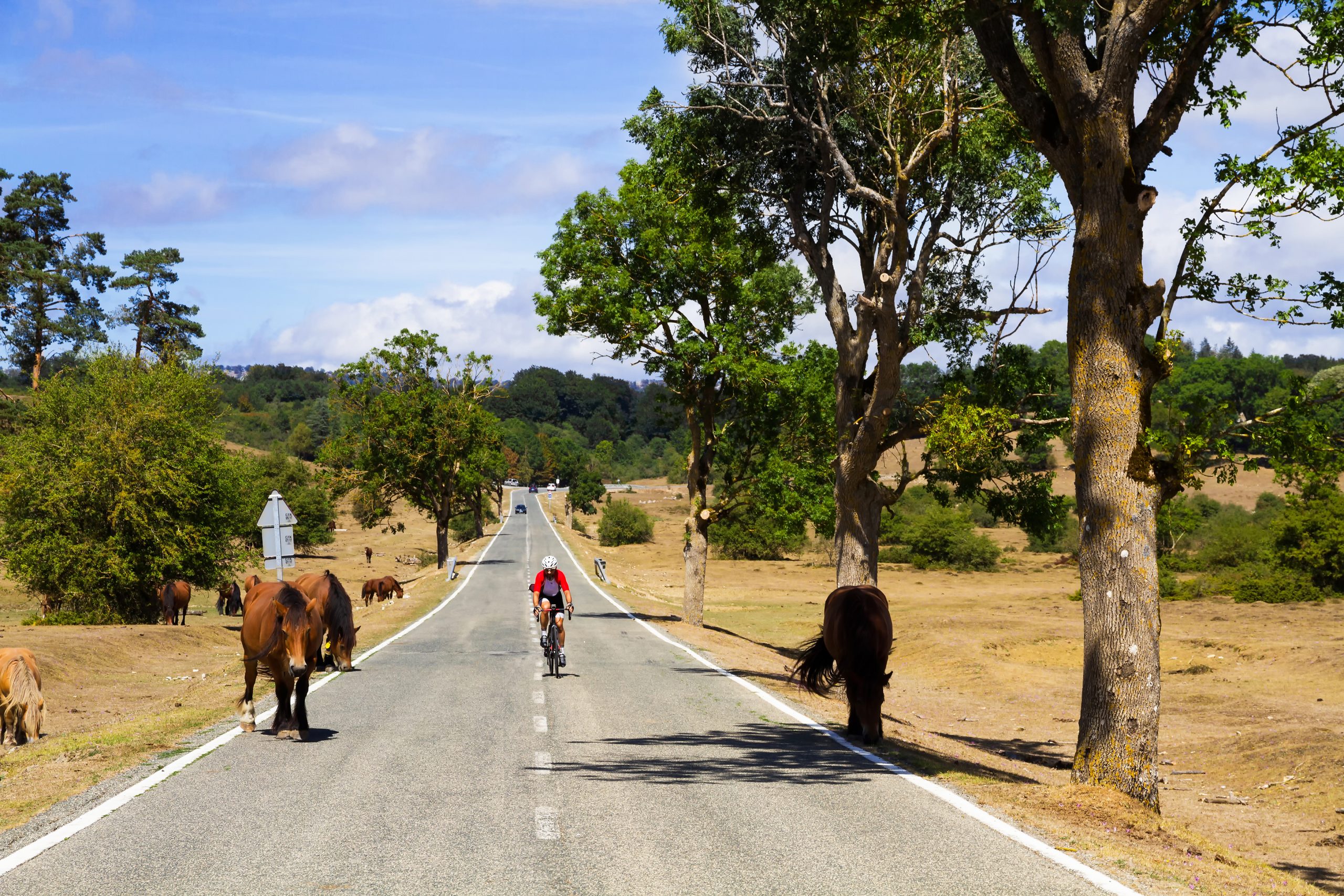 Practicando deporte de bicicleta entre animales por la zona de los Rasos de Urbasa