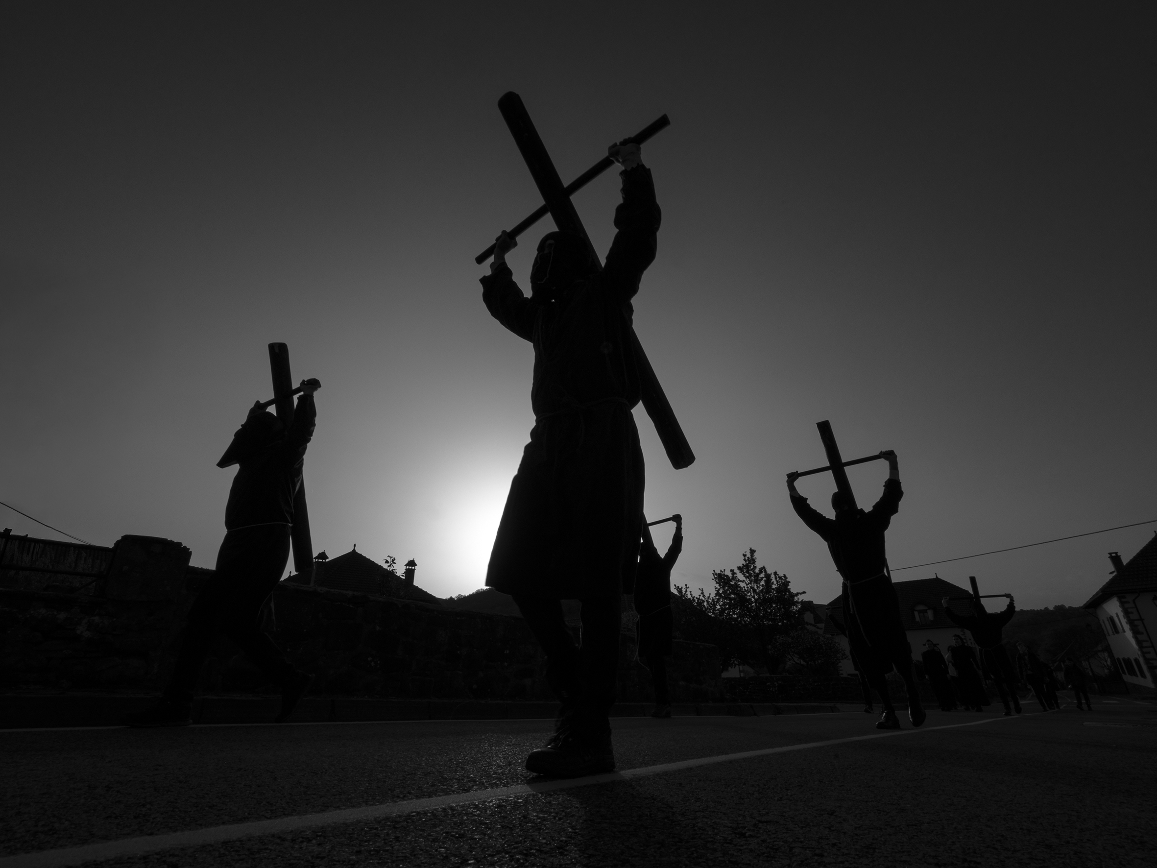 Romería desde el Valle de Aezkoa a Roncesvalles. La foto está realizada en Garralda a las 8:00 de la mañana.