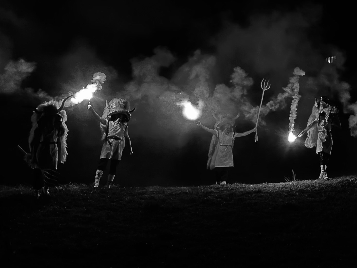 Todos los «momotxorros» se reúnen en el montículo, desde ahí amenazan a todos los que tienen debajo. Sujetan bengalas para demostrar su aspecto bajo la luz de la luna. Desde abajo todo da miedo. Nadie sabe si van a atacar o se van a quedar ahí mirando. La incertidumbre es el mayor apoyo de ellos, y el mayor miedo del expectante.