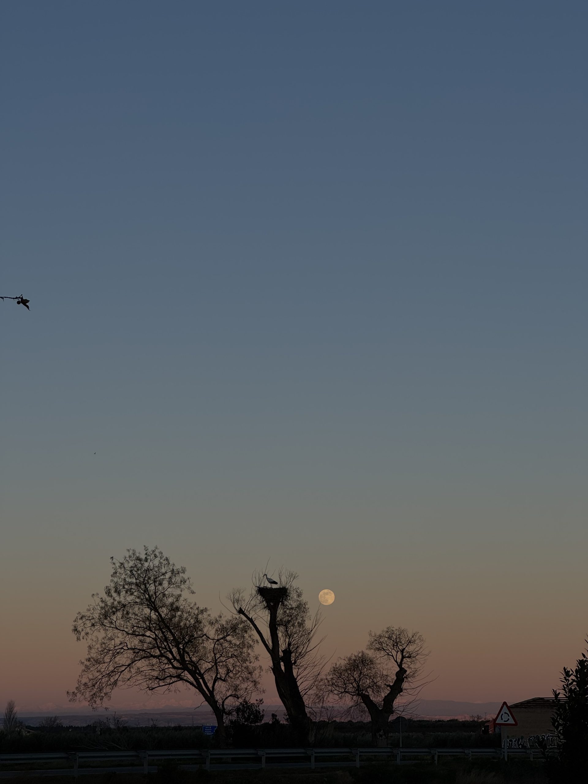 Guardiana del crepúsculo Concurso: Paisajes y patrimonio https://concursos.diariodenavarra.es/conocer-navarra-2025/?p=24679 Un atardecer de enero de la mano de un cigüeña posada en su nido, mientras se oculta el sol y aparece la luna en las afueras de Cintruénigo.