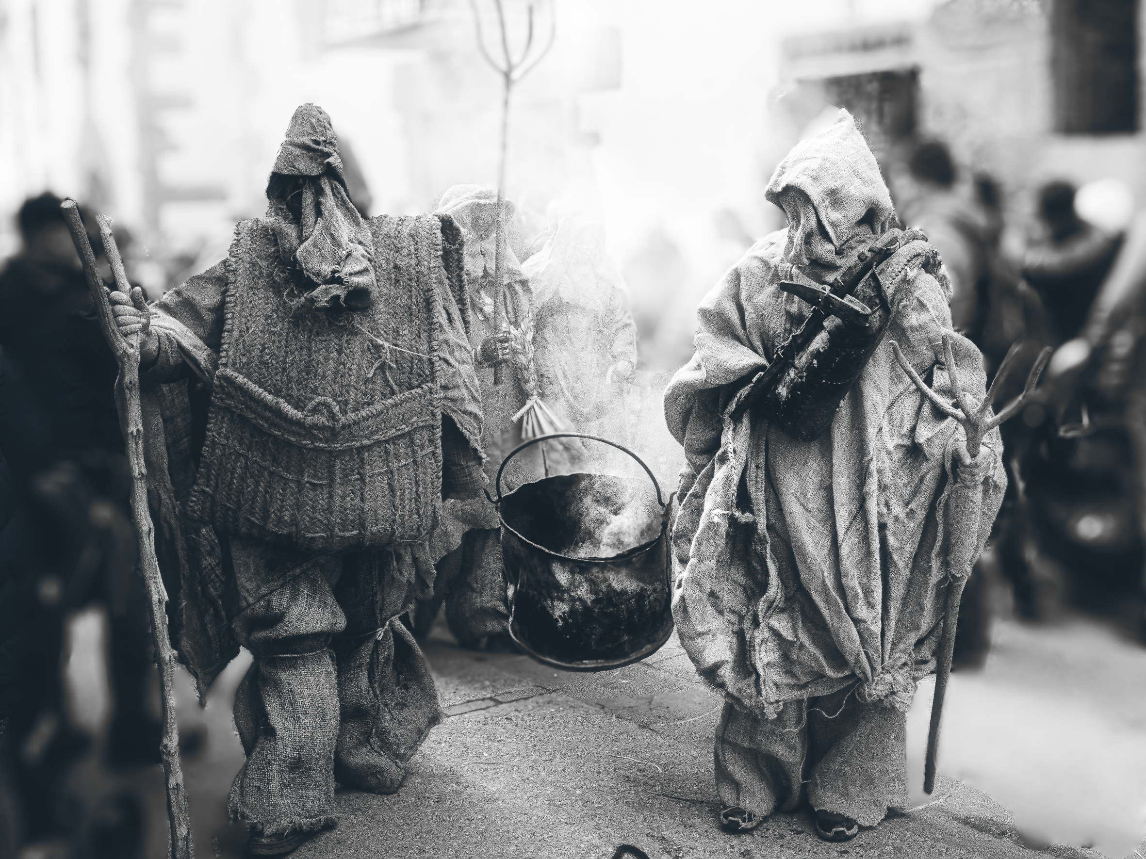 Carnaval de Lanz. Los Herreros siempre son figuras inquietantes a las que favorece el juego de luces y sombras.