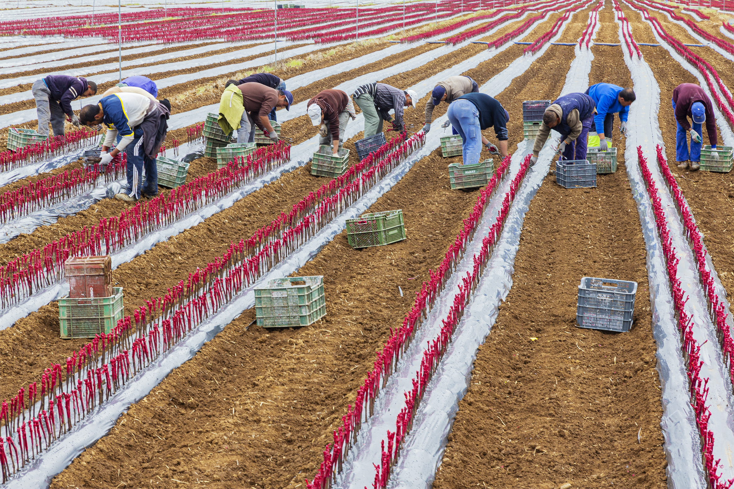 La cuadrilla plantando injertos de vid en Larraga