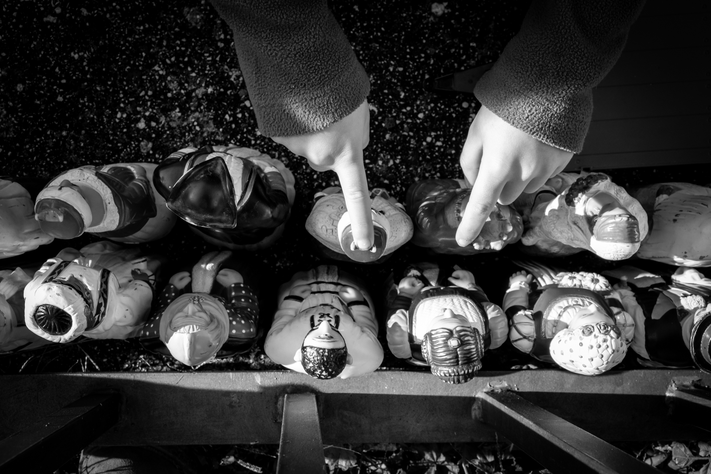 Un niño juega con la colección de gigantes que tiene.