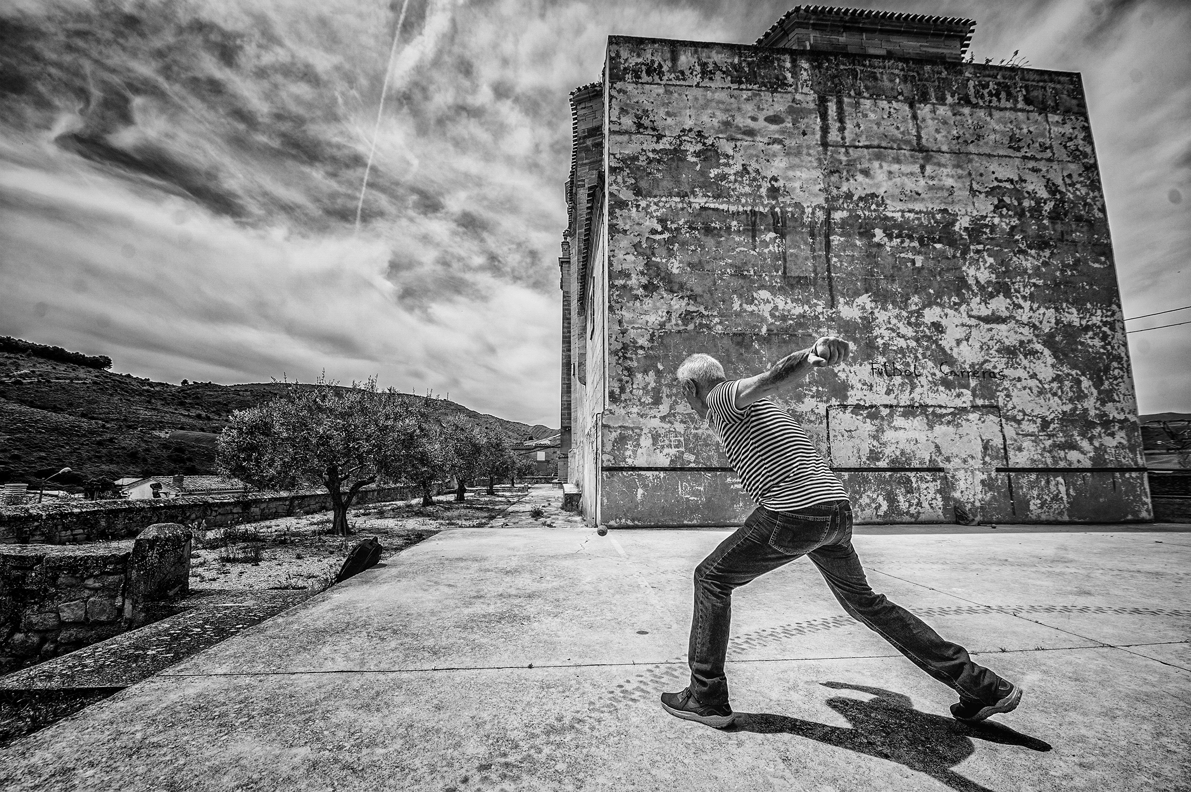 Jugando a pelota en el frontón sin pared izquierda de Desojo