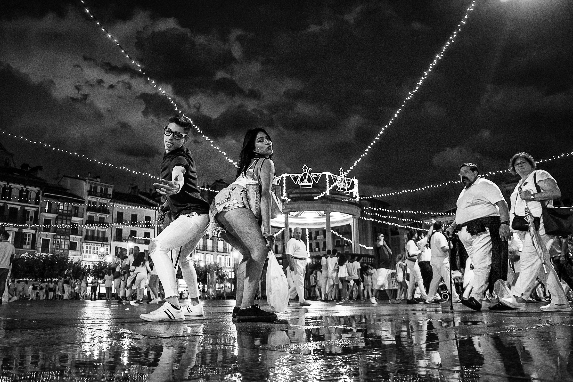 Perreo sanferminero Concurso: Fiestas y tradiciones https://concursos.diariodenavarra.es/conocer-navarra-2025/?p=25567 Una pareja baila en la plaza del Castillo