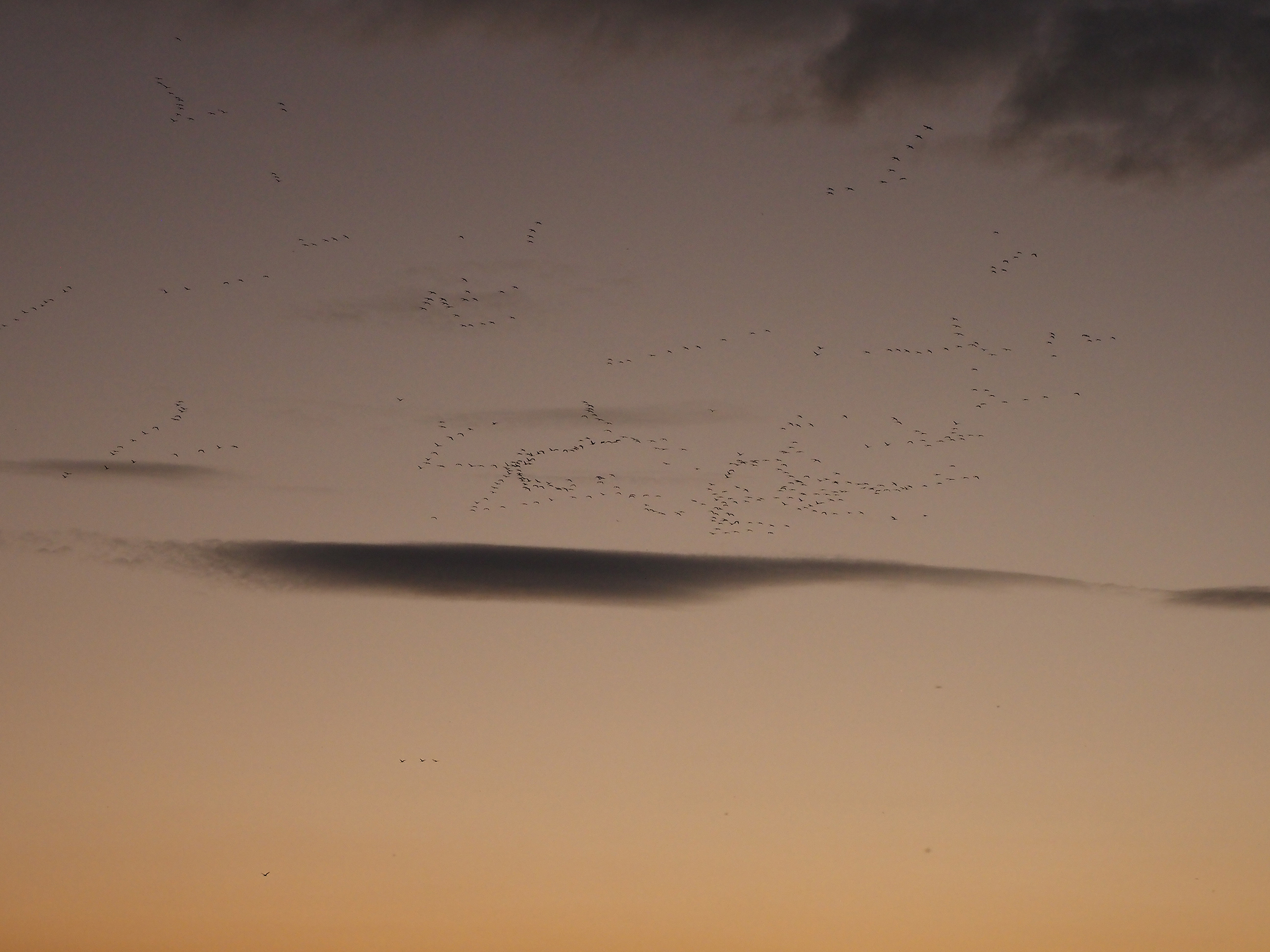 En un cielo cubierto de nubes, cientos de aves dibuja trazos cambiantes que recuerda a un mosaico digital en constante mutación. Su vuelo colectivo convierte el aire en una pantalla viva, donde cada punto -cada «pixel»- forma parte de una composición efímera e irrepetible. El fondo gris actúa como un lienzo neutro, resaltando la vibración del movimiento y la armonía espontánea de la bandada. Una imagen traduce la naturaleza en lenguaje visual contemporáneo: orden y caos coexistiendo en un instante suspendido.
