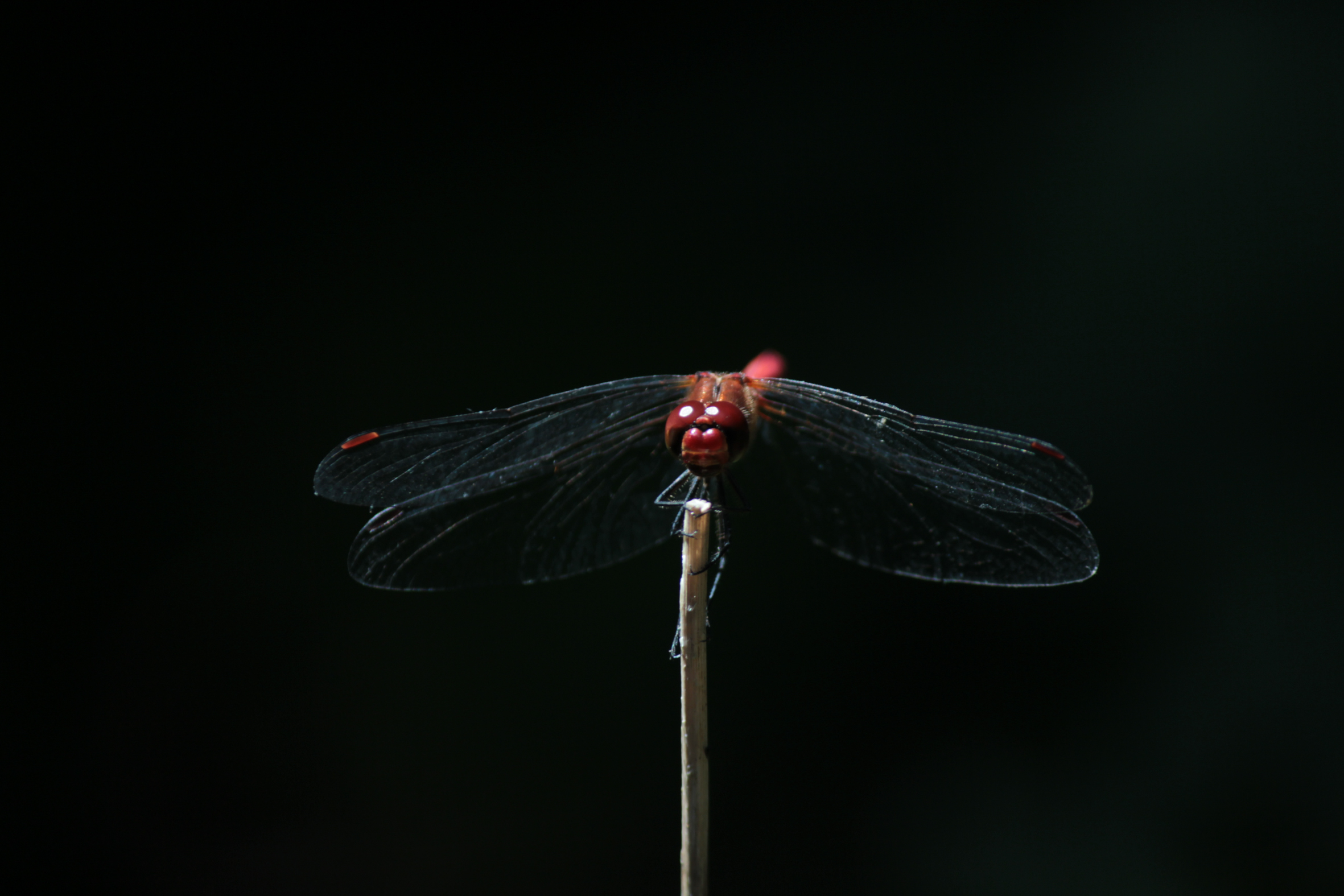 Imagen de una libélula posada en una rama en el bosque de Orgi