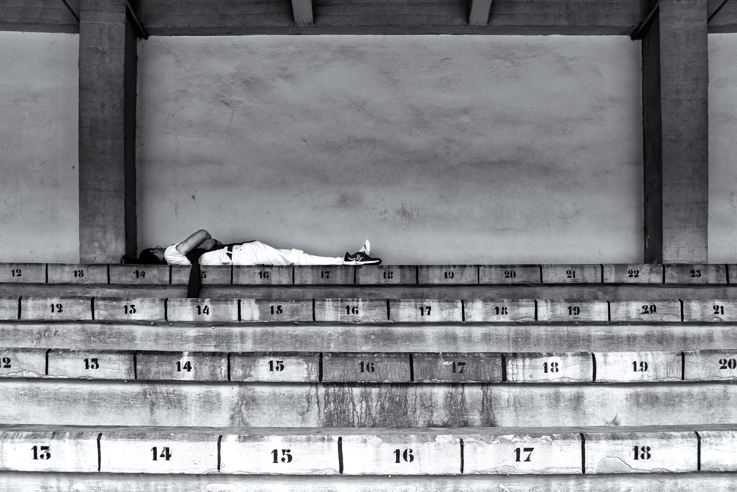 Un pamplonica duerme el sueño de los justos en el tendido de la Plaza de Toros de Pamplona.