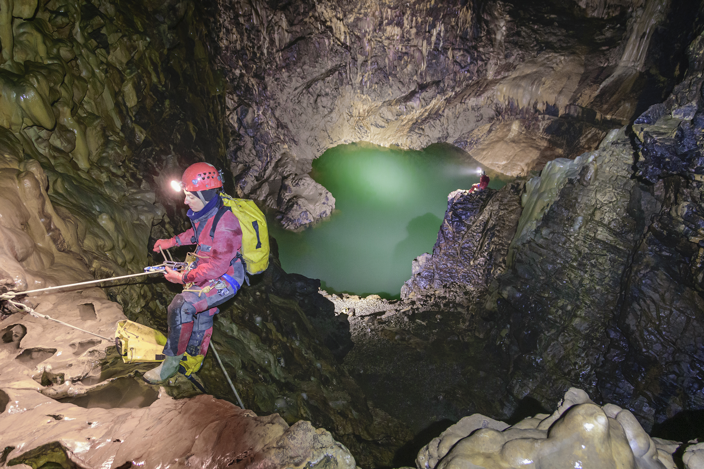 Bajo nuestro pies, Navarra esconde un rico patrimonio subterráneo. En este caso se observa la zona final de la sima de Lezegalde cerca del pueblo de Iribas, donde el río Larraun desaparece al poco de nacer y se esconde bajo tierra reapareciendo unos kilómetros más tarde de nuevo (el pequeño guadiana le llaman). Los espeleólogos mediante cuerdas pueden llegar al fondo de la cavidad viendo este espectacular lago formado por las aguas del mencionado rio