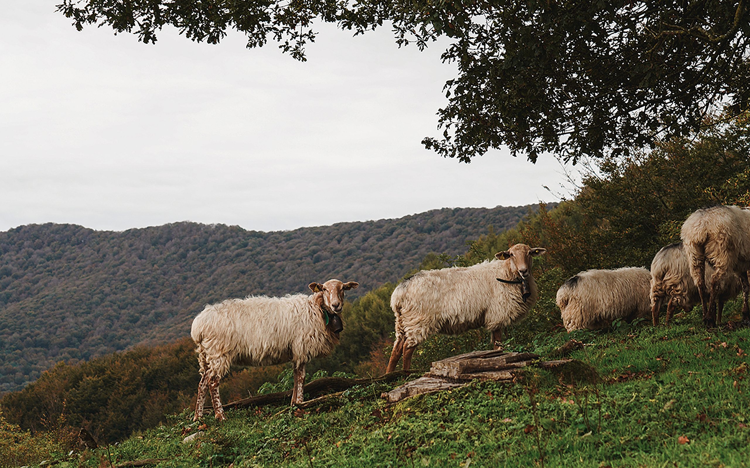 Un rebaño de ovejas pastando en la montaña navarra. Un momento de calma que recuerda la belleza de lo sencillo y la importancia de desconectar para volver a conectar con la naturaleza.