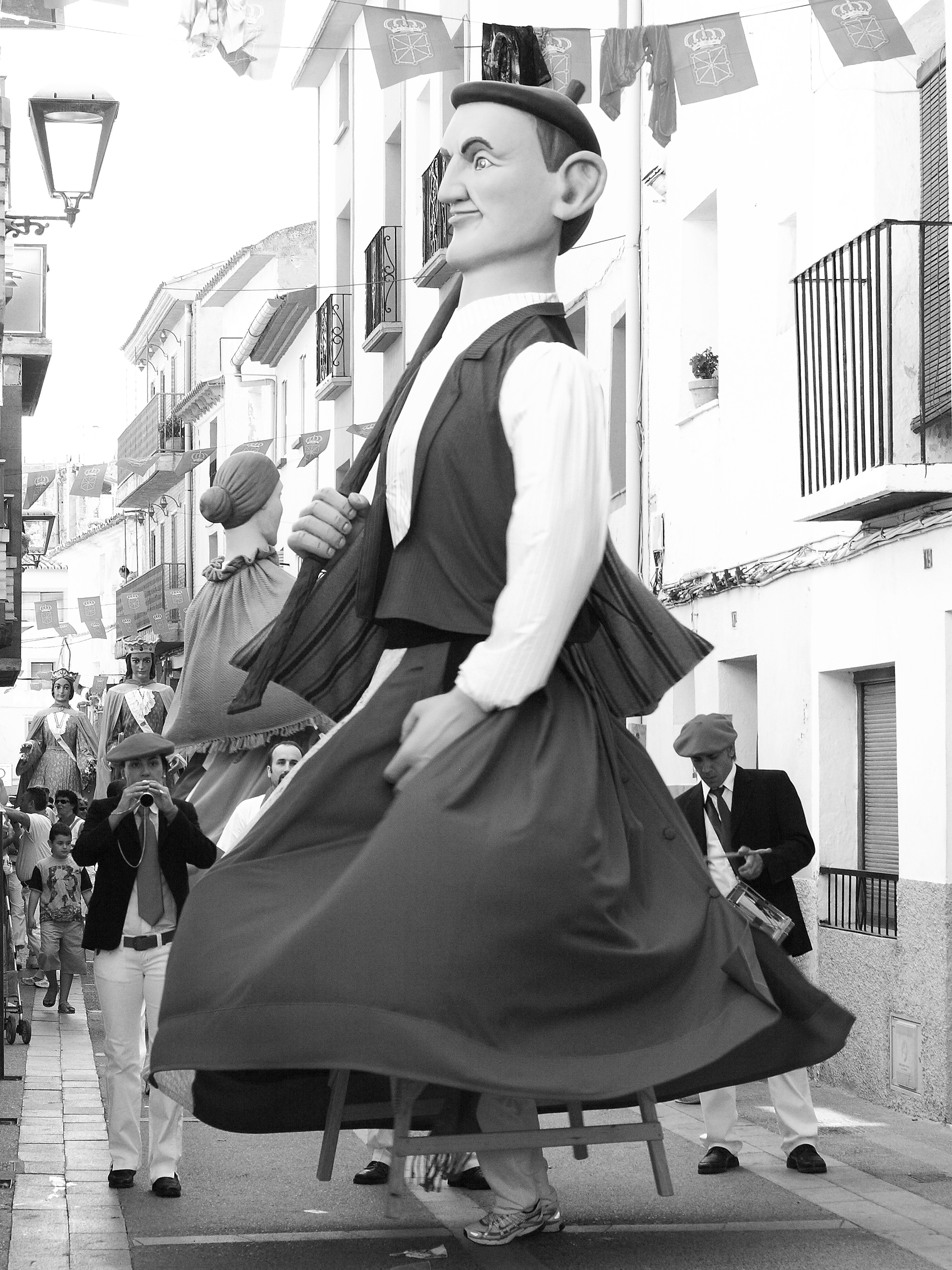 Los gigantes Vitorio y Vicenta bailan en la calle Mayor de Ablitas.