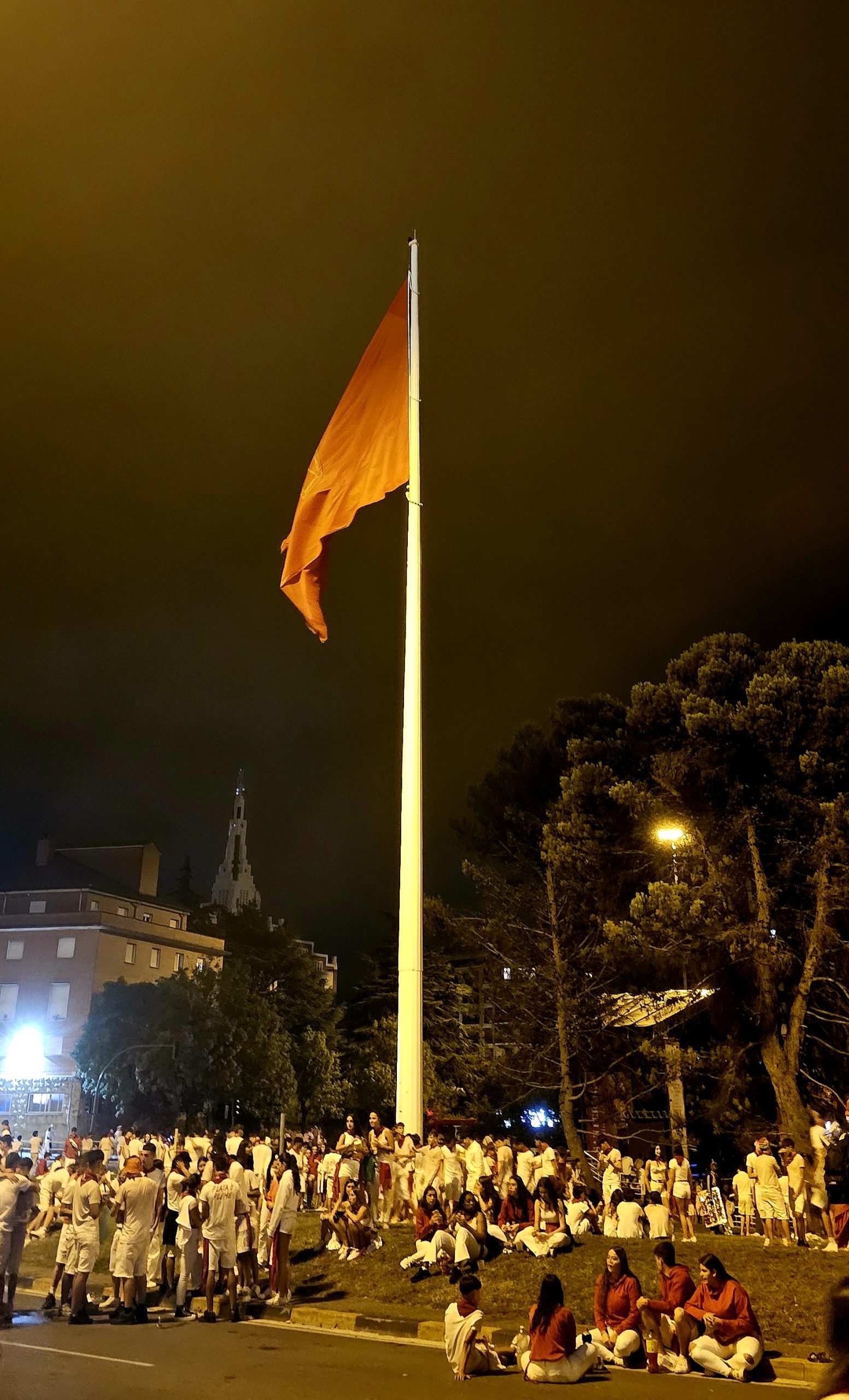 La gente va llegando y posicionandose alrededor del estandarte que luce ondeante la bandera roja de Navarra.que como un faro a la mar ha ido guiando a la multitud.